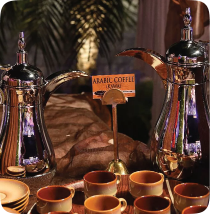 From the rich aroma of freshly brewed Arabic coffee to the elegance of traditional tea ceremonies, Dheyafa brings the warmth and sophistication of authentic Arabic hospitality to your events. Whether you're hosting a family gathering, wedding, or cultural celebration, we ensure every detail reflects the beauty of our heritage.